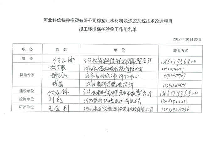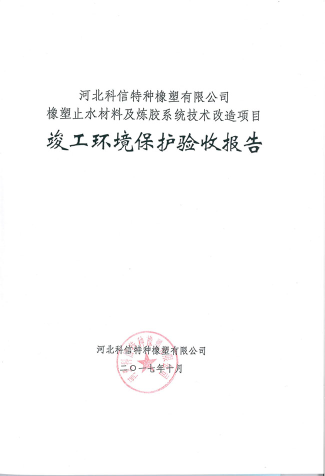 河北科信特種橡塑有限公司橡塑止水材料及煉膠系統(tǒng)技術改造項目竣工環(huán)境保護驗收報告如下: